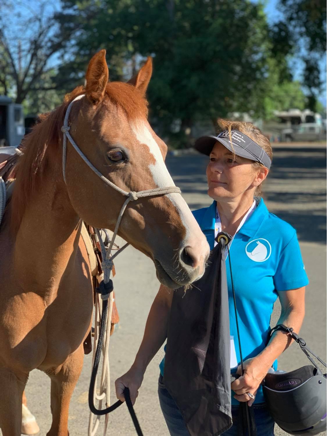 “I was given the unexpected opportunity to work with Aries for two days of the June 2021 Joel Conner clinic. This was my first chance to work with her, and also my first opportunity to ride a SAFE horse in the clinic. Aries is a sweet mare who wants to please. She braces on her shoulders, so we worked on the ground getting her to move her front end laterally. Most of my one on one time with Joel was spent with me learning the art of using Mecate reins, bending, changing direction, and a one rein stop. There is a lot to learn for a long time hunter rider, with lots of potential pitfalls. Both Terry and Joel walked me through the mechanics of it patiently. Aries was also patient and filled in nicely! It was exciting to have this chance to extend my riding. Thanks to Terry, Joel, and Aries.”