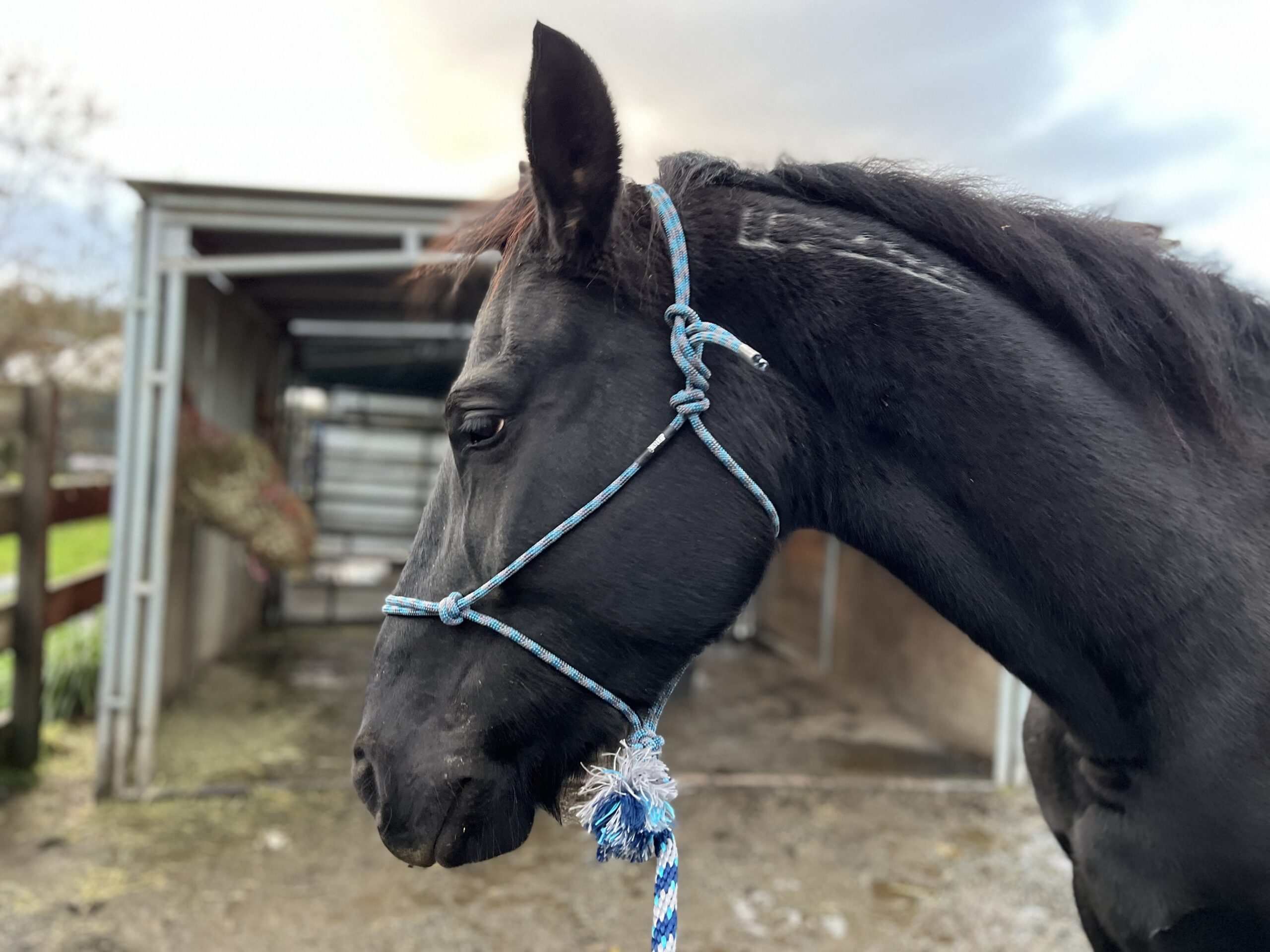 Blanche, despite being named for a Golden Girl, is neither old nor golden. She is a 7‑year-old BLM mustang mare whose white freezebrand is the only part of her that isn’t black. This lovely lady came in alongside Dorothy, and despite not having known one another before the trailer ride over, the two will forever be bonded as Golden Girls as well as SAFE horses.