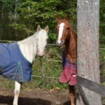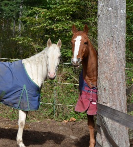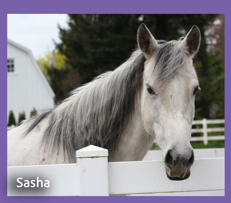 After nine years as a SAFE horse, an adopter finally arrived for Honeycutt. At the time, he and Sinatra were living together at Bonnie’s farm in Silverdale, and although Bonnie was very sad at the thought of Honeycutt leaving, she didn’t want to get in the way of his happiness. Sinatra and Honeycutt had formed quite a bond, which was rather remarkable because Honeycutt was a fairly dominant horse in his herd and Sinatra had never really gotten a grasp on normal horse behavior, so he could be quite the pest. But Honeycutt took him under his wing, almost as if he knew Sinatra was a little “special.” He showed an incredible amount of patience toward the younger horse, who followed him everywhere like a little white shadow. So when Honeycutt’s potential adopter came to visit, Bonnie asked Sinatra to please be on his best behavior and maybe both of them could get adopted. Of course Sinatra was a holy terror that day, screaming for Honeycutt, banging repeatedly on his metal gate, and even breaking into the barn aisle and dumping the grain bucket and the garbage all over the floor. But the adopter surprised us all by saying that he didn’t think it would be right to take Honeycutt away from Sinatra, so he offered a home to both of them. The friends moved to a big farm in Onalaska where they could live among all sorts of farm animals and still be together.